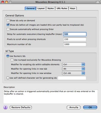 Mouseless Browsing è veramente comodo e dal menu delle opzioni, per la verità un po' nascosto, puoi anche configurare al meglio l'estensione applicando alcune regole. Peccato solo che quando i link su una pagina sono numerosi, la presenza massiccia di numeri può risultare talvolta molesta.